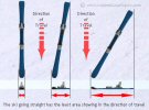 A ski will always want to travel straight forwards, unless other basic mechanics techniques are being used to make it travel in another direction.