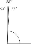 The angle that the edges are sharpened at also makes a large difference. Most types of ski are used with side edge angles of between 90 and 88 degrees, with racing style skis generally having an edge angle of 87 degrees. Skis used for competitive racing however can have edge angles lower than this. As the diagram shows there is not much of a difference between these angles, especially when you consider that an edge is only a few millimetres thick, yet these small differences in angle can have a very noticable effect. Lower edge angles will not work on all skis though. Apart from the increased skill needed to use smaller angles, a ski needs to be very stiff to handle a very sharp edge, or the ski will just bounce around on the snow with the edge catching and releasing, giving less control than if the edges weren't as sharp.