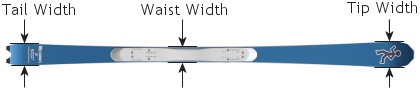 The width of a ski can make a difference to how well the ski floats in powder, and to how much pressure can be applied to the edges. If a ski is very wide, it will increase the surface area of the base, which in turn puts less pressure into the snow underneath and makes the ski float better in powder. Which is why powder skis are often very wide. However the width of a ski also effects how easy it is to apply pressure to the edges, with it being harder to create edge pressure the wider a ski is. Therefore racing skis and skis intended for icy conditions where edge pressure is very important are normally narrower. The current trend is for manufacturers to make allround skis a bit wider so that they are better in powder, but not so wide that there is any major effect on their icy handling abilities. A ski's width is normally given in three measurements, tip width, waist width, and tail width, which are normally written somewhere on the top of the ski.